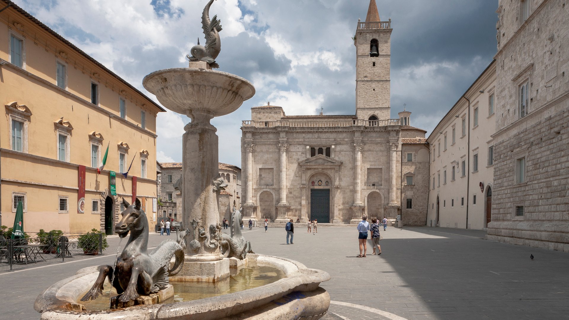 Il salotto di Ascoli Piceno, una delle piazze più belle d’Italia, circondata da caffè storici, palazzi rinascimentali e il celebre Caffè Meletti.